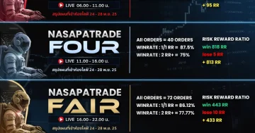 NASAPATRADE | Real-time Zoom VIP Room สัปดาห์นี้เป็นอีกหนึ่งสัปดาห์ที่ทีม NASAPATRADE ทำผลงานได้อย่างโดดเด่น จากการเทรดสดแบบเรียลไทม์ ครอบคลุมทุกช่วงเวลาตลาด ผลการเทรดประจำสัปดาห์ 🎯 ไลฟ์รอบที่ 1 (06.00–11.00 น.) — PHU • จำนวนออเดอร์: 19 • Winrate 1:1 RR: 79% • Winrate 2 RR+: 57.89% • ชนะ: 99 | แพ้: 4 • กำไรรวม: 95 RR 🎯 ไลฟ์รอบที่ 2 (11.00–16.00 น.) — FOUR • จำนวนออเดอร์: 40 • Winrate 1:1 […]