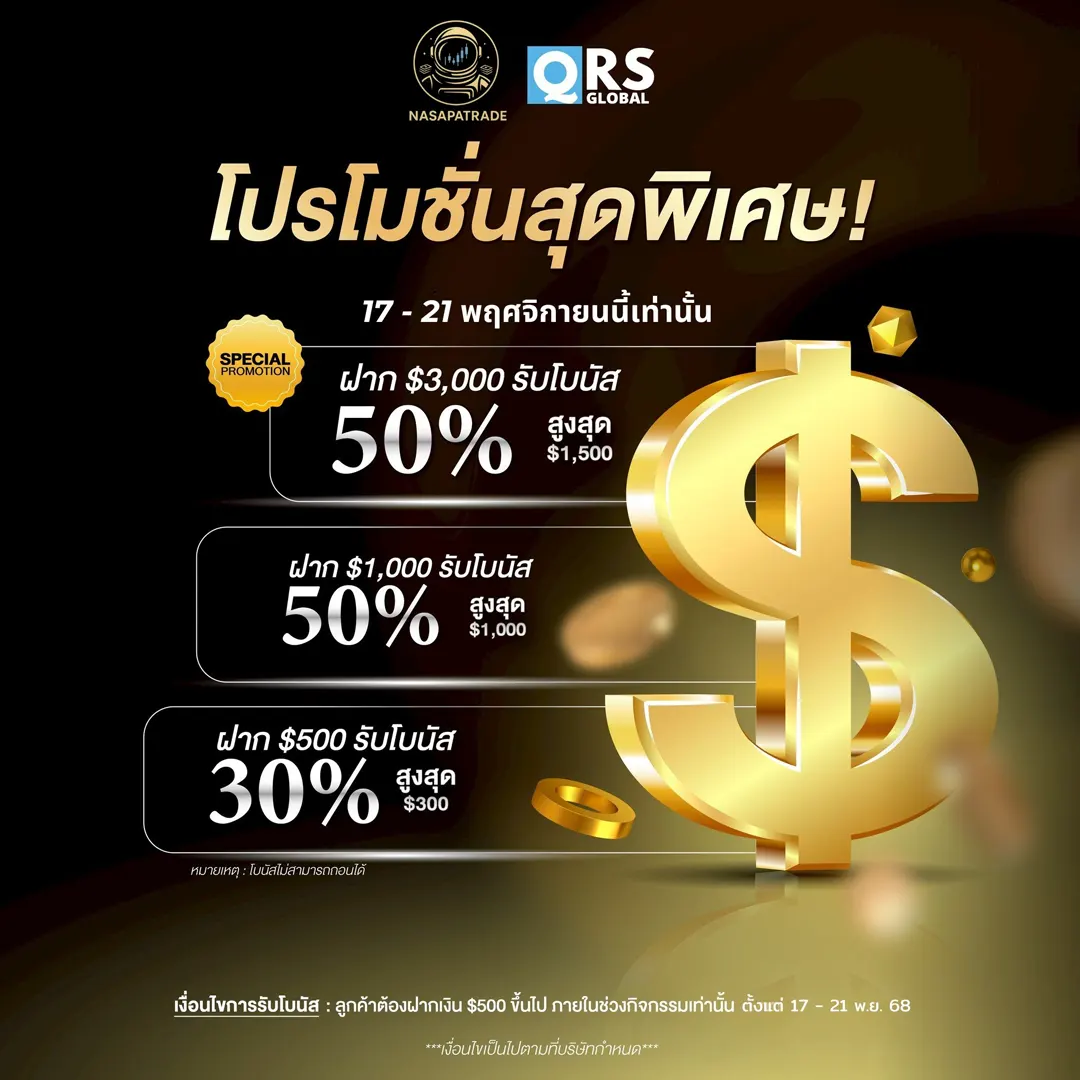 โอกาสดีสำหรับเทรดเดอร์ที่ต้องการเพิ่มพลังทุน — รับโบนัสพิเศษทันที เมื่อฝากผ่านบัญชี STANDARD เท่านั้น 💰 รายละเอียดโปรโมชั่นโบนัส 🔥 ฝาก $3,000 → รับ โบนัส 50% สูงสุด $1,500 🔥 ฝาก $1,000 → รับ โบนัส 50% สูงสุด $1,000 🔥 ฝาก $5,000 → รับ โบนัส 30% สูงสุด $300 หมายเหตุ: โปรโมชั่นใช้ได้เฉพาะวันที่ 17–21 พฤศจิกายน สำหรับบัญชี STANDARD เท่านั้น 📌 เงื่อนไขพิเศษสำหรับผู้ที่มีเครดิตเดิม 20% หากมีเครดิตค้างอยู่ ระบบจะหักเครดิตเดิมก่อน จากนั้นแอดมินจะเติมโบนัสส่วนที่เหลือให้ตามสิทธิที่ได้รับ หากเครดิตเดิมถูกใช้หมดแล้ว แอดมินจะเติมโบนัสให้ “เต็มจำนวน” ตามโปรโมชั่นทันที 📝 วิธีขอรับโปรโมชั่น ลูกค้าต้องแจ้งคำว่า […]